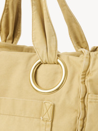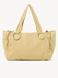 This large Chloe Plage tote bag is crafted from washed cotton with a faded finish. The roomy main compartment features multiple pockets, oversized gold-tone eyelets and a printed Chloe logo signature. PRODUCT DETAILS Large Chloe Plage tote bag in washed cotton Main material: Cotton Main lining: Cotton Inside trim: Calfskin Carry: Shoulder - 1 roomy main compartment - 2 inside flat pockets - 2 side flat pockets - 1 front flat pocket Comes with a dust bag - Width: 17.7" (45 cm) - Height: 12.6" (32 cm) - Depth: 8.9" (22.5 cm) - Strap drop: 10.6" (27 cm) Color: Porcelain Yellow Item code: CH25AS545P10721