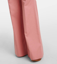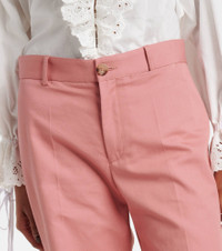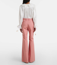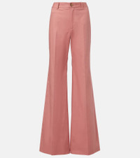 Crafted in Italy from pure cotton, these flared pants from Chloe feature a single pleat on either side. This design comes with side-slit pockets and back pockets. Product Details - Material: 100% cotton - Care instructions: dry clean - Made in Italy - Designer color name: Wild Pink - Item color: pink - Pocket lining: 100% cotton - Details: 100% water-buffalo horn - Contains non-textile parts of animal origin - Closure: zip and button fastening - Pockets: slit pocket, back pockets - Belt loops - Single pleat - Item number: P01049399 Size & Fit - True to size - Sizing adapted to taller women - Non-stretchy fabric - Flared - High-waisted - The model seen in the picture is 178cm-5'10" and wearing a size FR 36