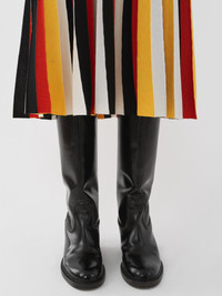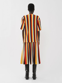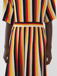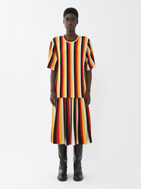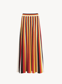 Made from a lower-impact wool knit, this pleated mid-length skirt has a high-waisted, flared silhouette. The casual ribbed waist and soft wool drape get a feminine update in the all-over pleats. PRODUCT DETAILS Pleated mid-length skirt main material: 100% Wool Care: dry cleaning only Fit: high waist, flared, midi-length - The model is 5'10" (178 cm) and wears a prototype in size S - Flared wool skirt - Slips on The wool used in this product comes from a farm that respects animal welfare, maintains soil health, protects biodiversity and promotes native species Color: Orange Multicolor Item code: CHC23SMJ105508ZA