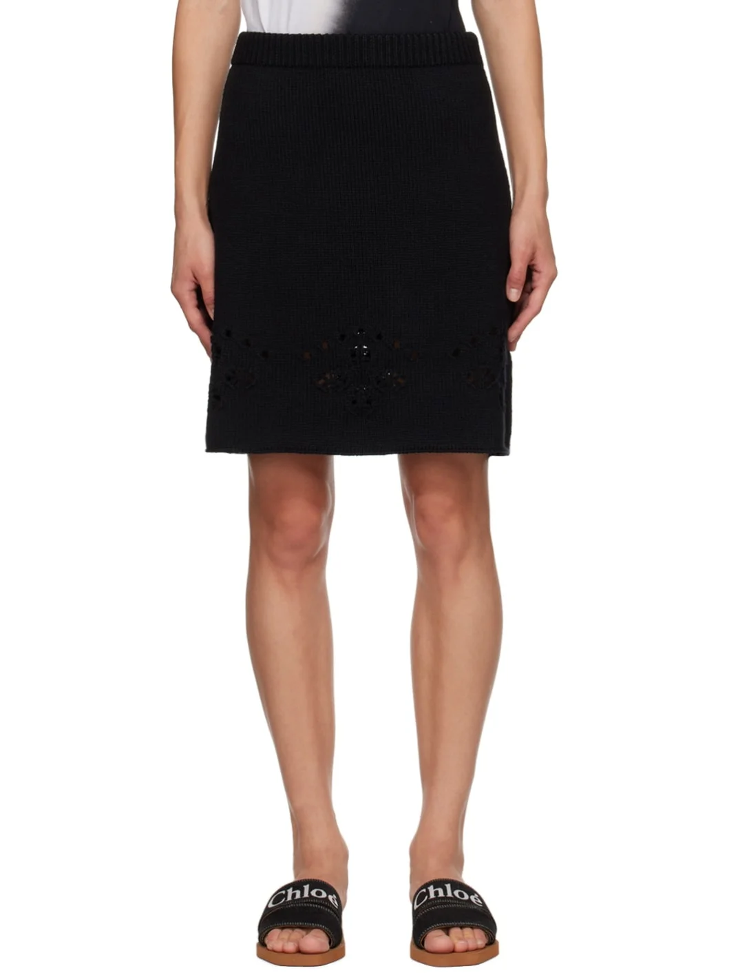 Knit wool skirt. · Rib knit waistband · Pointelle knit detailing at front and back · Rolled hem Supplier color: Black 100% wool. Made in Italy 232338F090000
