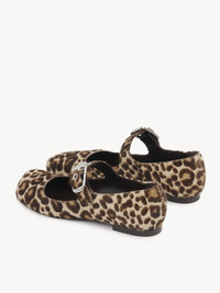Crafted from leopard-print pony calfskin, the Polly ballerina is a daring reinterpretation of the classic ballet style. The modern silhouette pairs clean lines with an asymmetrical toe shape while an oversized silver-tone buckle secures the front strap. A deep chocolate lining signed with the Chloe logo finishes this playful ballerina. PRODUCT DETAILS Flat ballerina Upper: calfskin Inner sole: goatskin Main lining: goatskin Sole: cowhide Fit true to size, European sizing - Buckle fastening Pony leather should not be exposed to water. Should the shoes get wet, dry quickly with a soft cloth in a neutral color. To make this product, Chloe worked with Leather Working Group (LWG) certified leather manufacturers. LWG certifies tanneries based on their water and energy usage, management of chemicals, solid waste, and wastewater. Color: Jungle Brown Item code: CHC24W07BOQ220