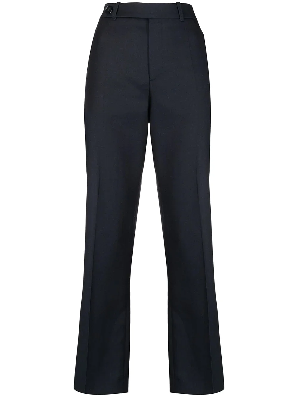 pressed-crease four-pocket tailored trousers ink navy virgin wool pressed crease belt loops front button and zip fastening straight leg two side slit pockets two rear welt pockets Made in Italy Composition Virgin Wool 100% Washing instructions Dry Clean Only