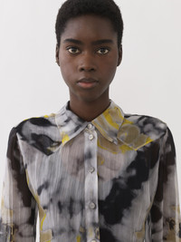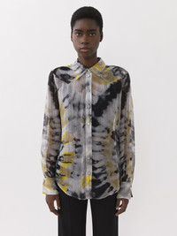 Crafted from organic silk crêpon, this western blouse combines an authentic all-over tie-dye print with a western-inspired yoke. The day-to-evening flou silhouette has gathered sleeves and tonal buttons through the front. PRODUCT DETAILS Western blouse main material: 100% Silk Care: dry clean only Fit: classic - The model is 5’10” (178 cm) and wears a prototype in size 36 - Silk blouse - Buttons through front and at cuffs This product is made from organic silk. Organic silk manufacturing restricts the use of pesticides, insecticides or harsh chemicals and incorporates methods that respect biodiversity, improve soil quality and reduce water consumption. Color: Grey Multicolor Item code: CHC23AHT593000ZA