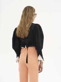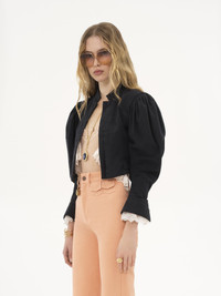 PUFF-SLEEVE CROPPED JACKET IN SILK FAILLE