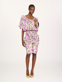 DESCRIPTION Gathered puff-sleeve cropped top in silk jacquard with a roses motif rooted in the Maison's heritage, featuring elasticated trims. PRODUCT DETAILS Cropped top outer shell: 100% Silk Fit: cropped, fluid - The model is 5'10" (178 cm) and wears a prototype in size 36 - Printed silk top - Elasticated neck & cuffs Color: Yellow & Purple Item code: CH26UH1023749W5 CARE INSTRUCTIONS To preserve the integrity of your garment, please refrain from washing, entrusting its care to professional cleaning services for optimal maintenance. This garment cannot withstand any bleaching agent. To maintain its shape, gently iron this garment at a maximum sole plate temperature of 110°C, taking care to avoid any harsh pressure while ironing. Entrust this garment to a specialist for mild cleaning with tetrachloroethylene and solvent F, ensuring its delicate nature is maintained with the most care. To best preserve its form and texture, please do not tumble dry this garment. To maintain its delicate nature, do not wet clean this garment. TRACEABILITY Better traceability is central to improving our materials as well as social and environmental practices. Finishing: Italy Weaving: China