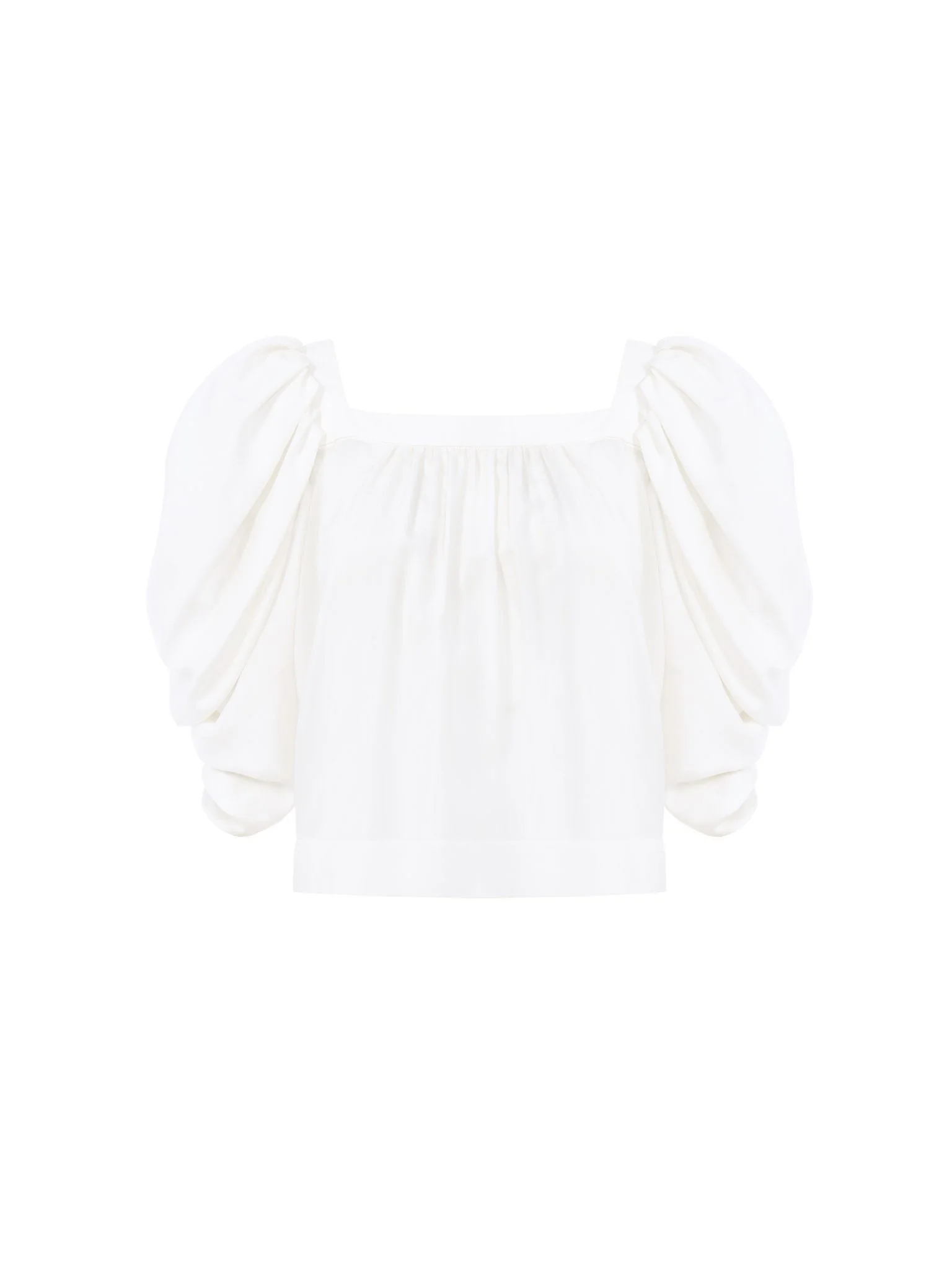Puff-sleeve pleated top in silk poplin with a square neckline and a fluid silhouette. PRODUCT DETAILS Pleated top outer shell: 100% Silk Fit: fluid - The model is 5'10" (178 cm) and wears a prototype in size 36 - Puff-sleeve silk top - Slips on Care: dry cleaning only This product was made in collaboration with Akanjo, a certified WFTO supplier. Akanjo is a social enterprise located in Madagascar that places equal pay and employees' health & wellbeing at the core of their priorities. A long-standing partner of Chloe for 15 years, Akanjo is also committed to training and promoting craftsmanship. Color: Iconic Milk Item code: CH25UHT34452107
