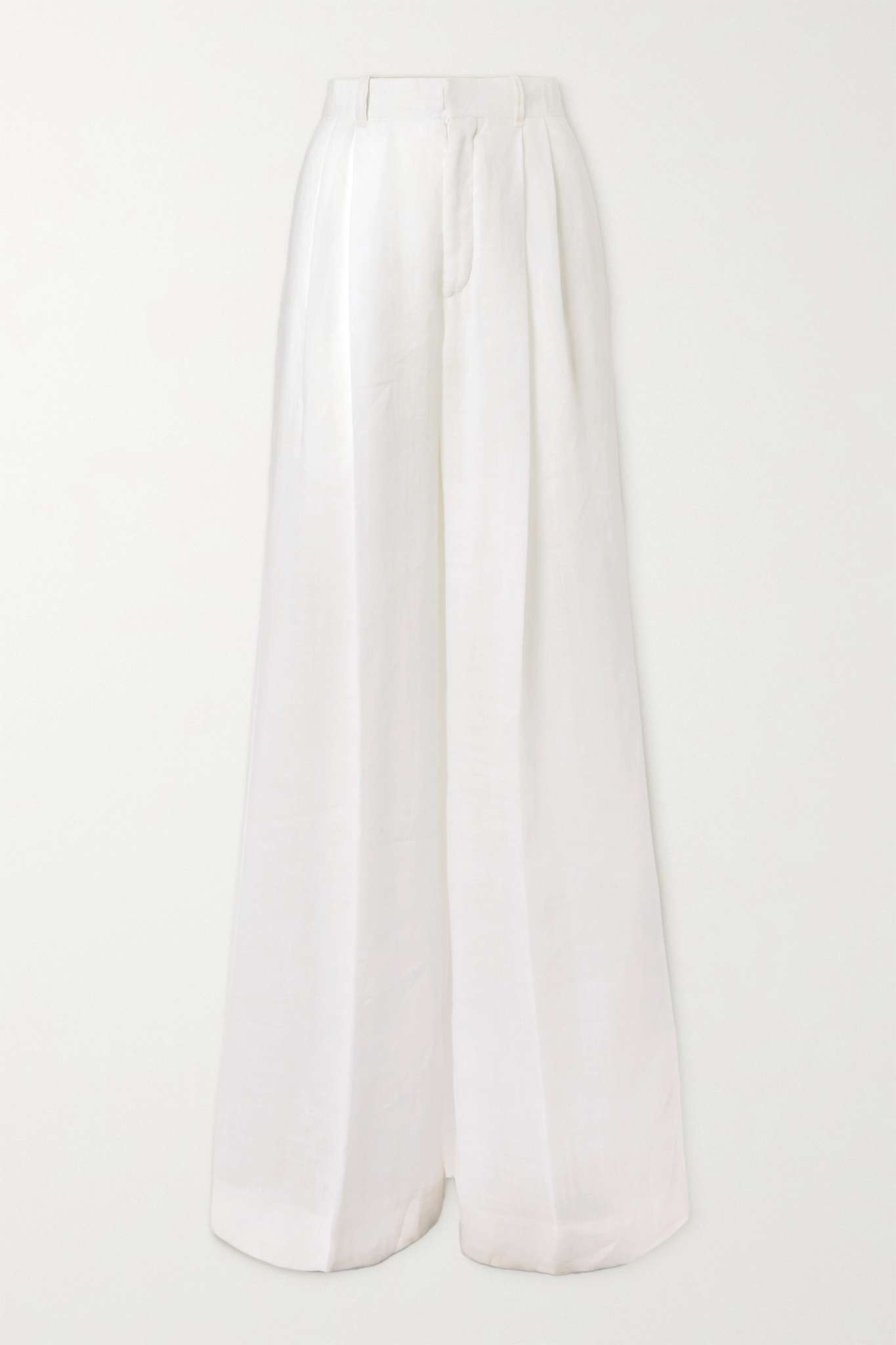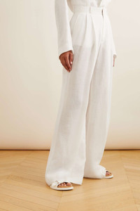 EDITORS'NOTES Chloé’s pleated pants will form the foundation of so many chic outfits. Spotted in the Spring '24 runway show - which took place at the Eiffel Tower during Paris Fashion Week - they’re tailored from airy ramie with a high-rise waist and long, wide legs. Wear yours with matching pieces from the collection. SIZE & FIT - Fits true to size, take your normal size - High-rise, cut for a wide-leg fit - Lightweight, non-stretchy fabric - Model is 180cm/ 5’11” and is wearing a FR 36 DETAILS & CARE - White ramie - Hook and concealed zip fastening at front - 100% ramie; lining: 100% silk