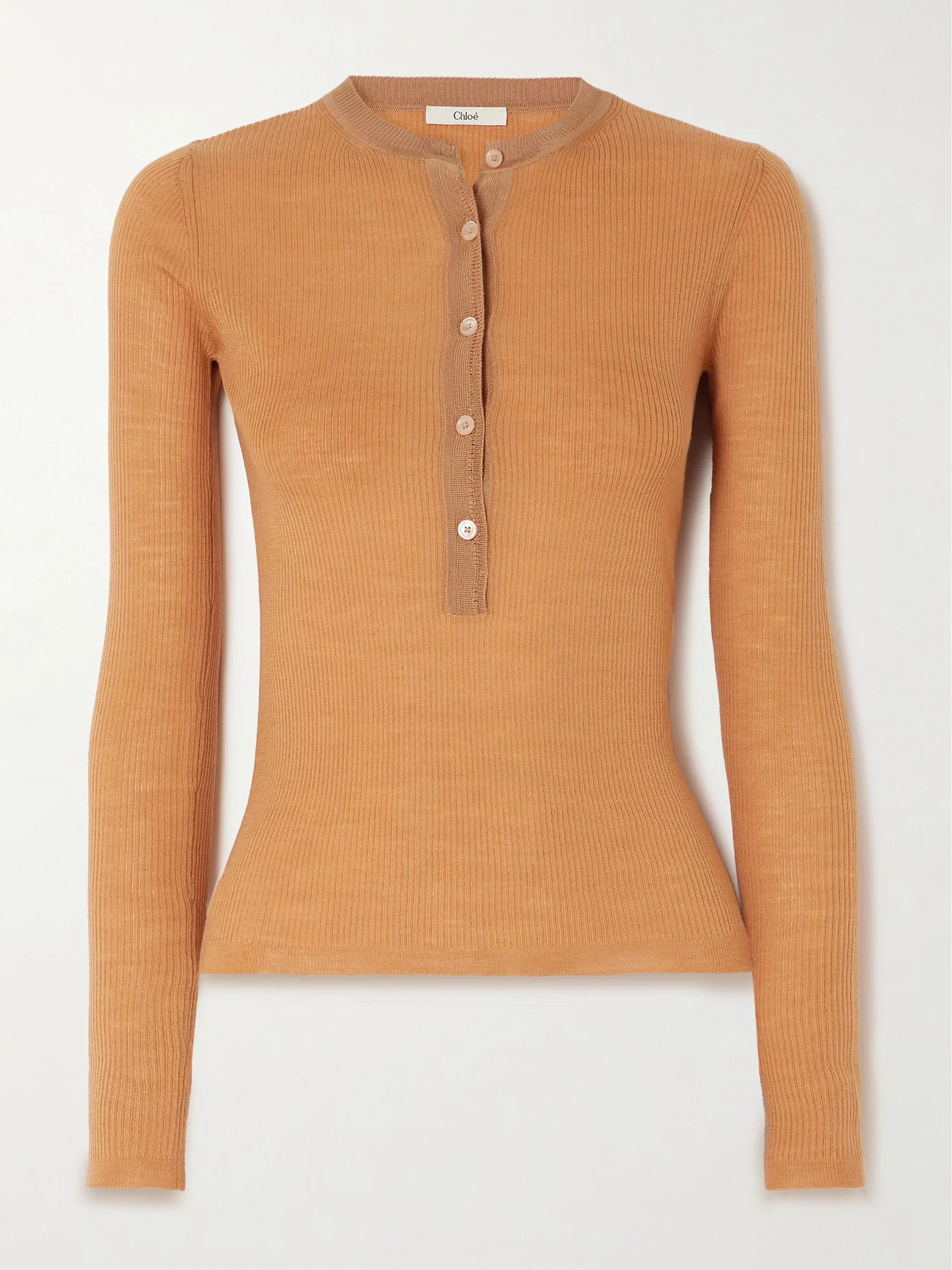 Chloe's sweater is so timeless, you'll still be reaching for it in seasons to come. It's cut from soft ribbed wool and topped with a classic Henley collar. Complement the versatile shade with other warm neutrals.