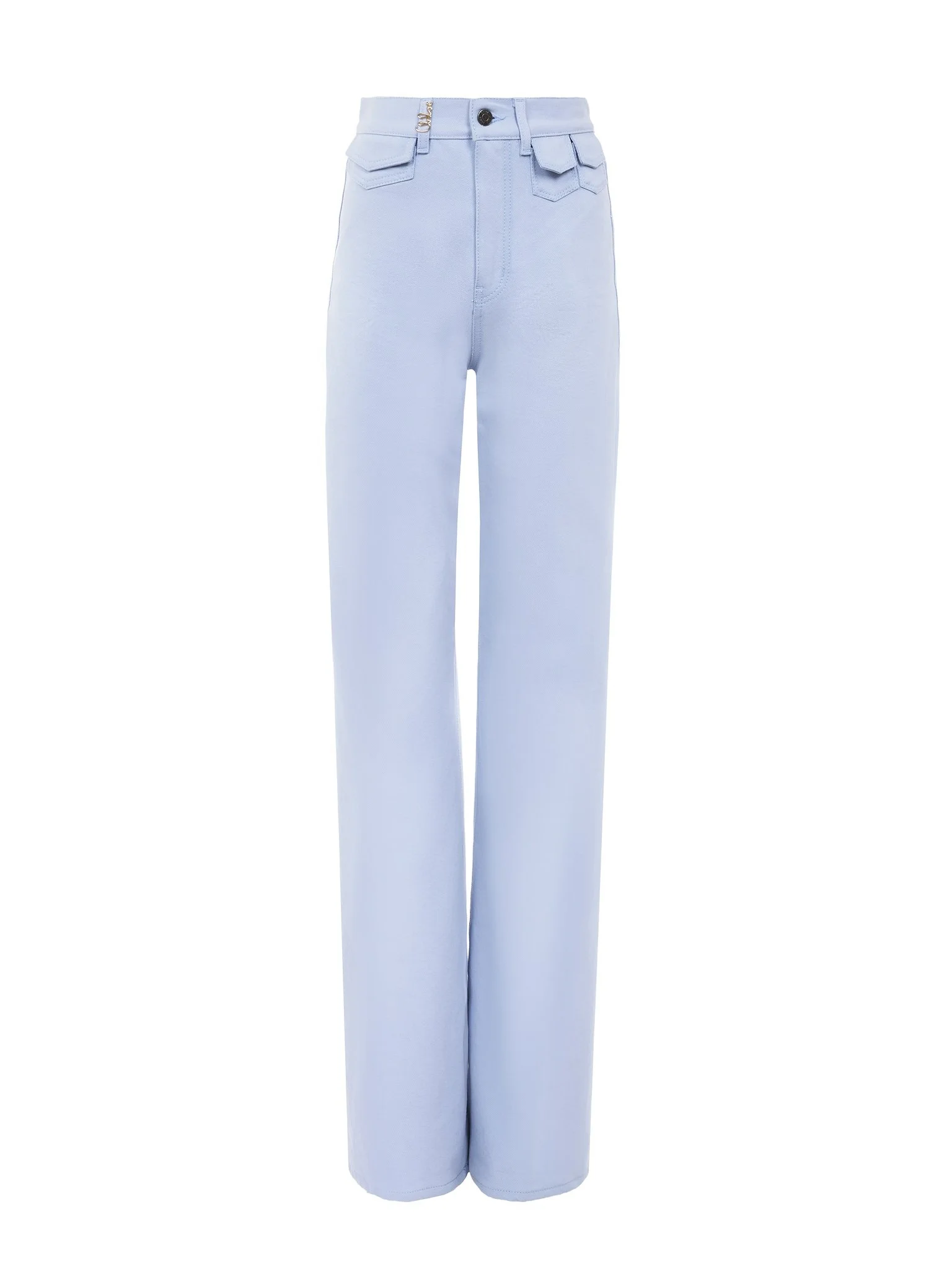 High-rise flare jeans in piece-dyed organic cotton denim with mini flap pockets at the waist. PRODUCT DETAILS High-rise flare jeans outer shell: 100% Cotton Patch: 100% Calfskin Fit: flared, high waist - The model is 5'10" (178 cm) and wears a prototype in size 34 - High-rise jeans - Front zipper & Chloe-engraved button fastening - 3 mini flap pockets at waist - Back pockets - Belt loops - Sliding gold-tone Chloe logo on front right belt loop - Leather Chloe patch at back Care: gentle wash 90°F (30°C) An organic cotton farming system sustains the health of soils, ecosystems and people by eliminating the use of toxic and persistent organic pollutants and increasing water conservation. Color: Shady Blue Item code: CH25UDP03252469