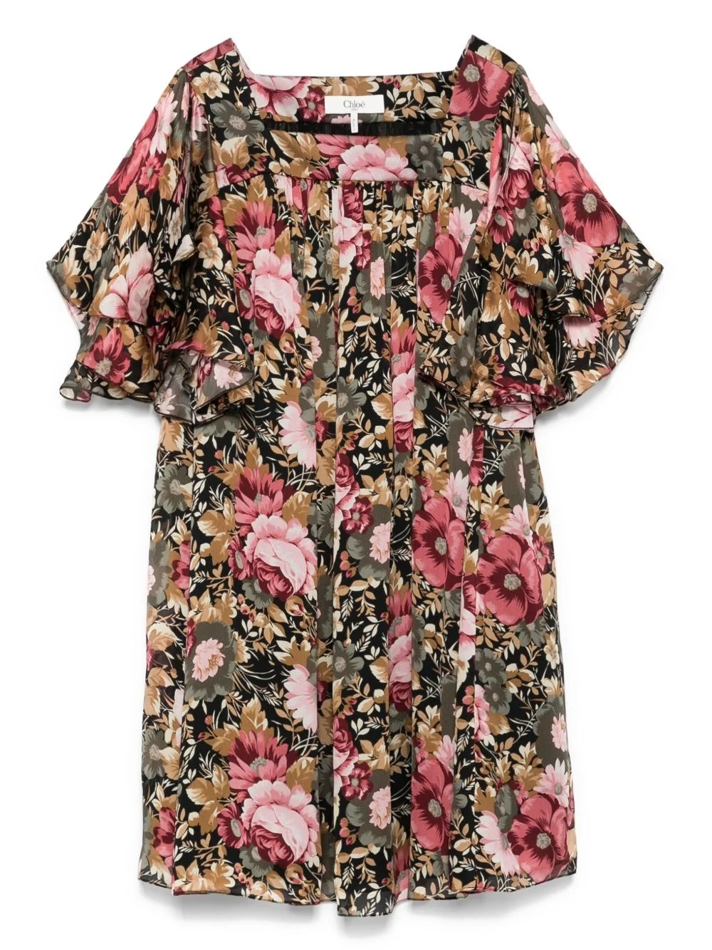 floral-print mini dress Highlights - Black - Square neck - Ruffled detailing - Full lining Made in France Composition Lining: Acetate 68%, Silk 32% Outer: Silk 100% SIZE & FIT Model measurements Height 5 ft 9 in(1.75 m) Bust/Chest 31.88 in(81 cm) Hips 34.64 in(88 cm) Waist 24.01 in(61 cm) FittingInformation Designed to be unstructured, offering a loose fit throughout Made from a lightweight non-stretch fabric Washing instructions Dry Clean Only