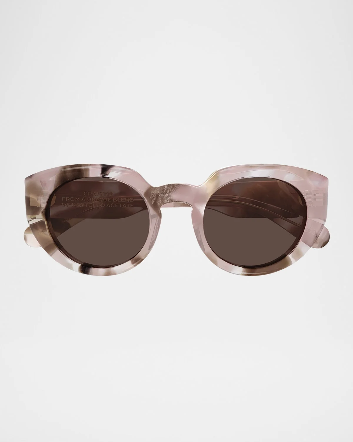 - Chloe round sunglasses in acetate - Eye/bridge/temple (in mm): 51-23-145 - Gradient lenses - Saddle nose bridge - Wide, tapered arms - Logo engraved at temples - Acetate - 100% UVA/UVB protection - Made in Italy - Proposition 65 warning for California residents
