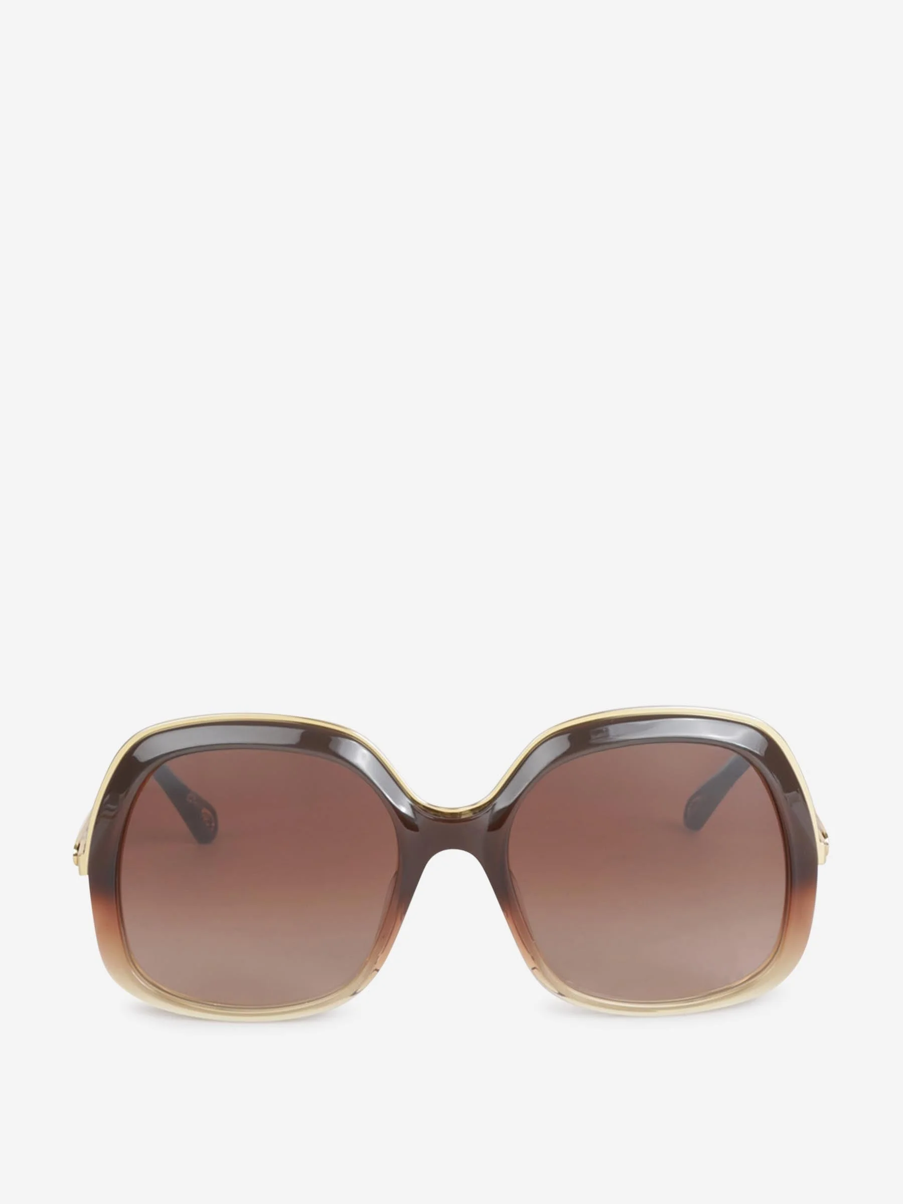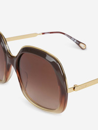 SKU: 860-001254 01 BRAND ID: CH0327S Round Sunglasses Sunglasses By Chloe • Bridge with curved design and temples decorated with metallic details • Round shape • Non-prescription • Acetate • Non-polarized • Logo engraved on the temples • 100% UV protection • Sunglasses Composition: 100% acetate Made in: Italy
