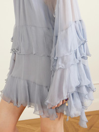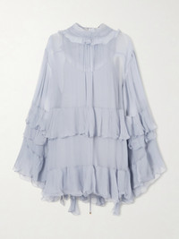 The tiered ruffles defining Chloe's dress are at their most beautiful in motion. It's cut from airy, sheer crepon with a dainty tie detail at the neckline. The brand likes to pair it with leather knee boots.