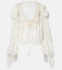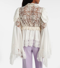 Chloe's designs are characterized by romance with a Parisian flair. This long-sleeved top makes a case with its white silk satin fabrication, delicate lace trims, and self-tie bow. Product Details - Material: 100% silk - Care instructions: dry clean - Made in Madagascar - Designer color name: Iconic Milk - Item color: white - Material II: 56% cotton, 44% polyamide - Lace: 60% cotton, 40% polyamide - Details: 68% cotton, 32% polyamide - Embroidery: 100% polyester - Contains non-textile parts of animal origin - Closure: self-ties - Item number: P01089584 Size & Fit - True to size - Semi-sheer - Cinched waist - Adjustable at the waist - Non-stretchy fabric - Slightly cropped - The model seen in the picture is 178cm-5'10" and wearing a size FR 36