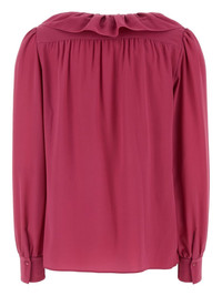 silk blouse Highlights - Dark pink - Front button fastening - Buttoned cuffs - Ruffled detailing - V-neck Made in France Composition Silk 100% SIZE & FIT Measurement SLEEVE LENGTH 24.01 in(61 cm) LENGTH 25.98 in(66 cm) WAIST 44.09 in(112 cm)
