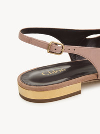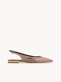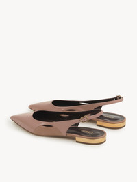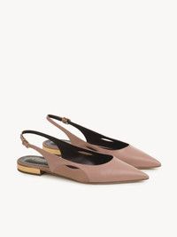 Crafted from a mix of soft and suede goatskin, the Saada slingback contrasts a sleek pointed toe with scalloped cut-outs, highlighting the Maison's leather craftsmanship. This adjustable slingback is set with a radiant gold heel, a Chloé-engraved gold buckle and a deep chocolate lining. PRODUCT DETAILS Slingback heel height: 0.4" (1 cm) Heel-to-toe drop: 0.2" (0.5 cm) Upper 1: goatskin Upper 2: suede goatskin Inner sole: kidskin Main lining: kidskin Sole: cowhide Heel: acrylonitrile butadiene styren Fit true to size, European sizing - Buckle fastening To make this product, Chloé worked with Leather Working Group (LWG) certified leather manufacturers. LWG certifies tanneries based on their water and energy usage, management of chemicals, solid waste, and wastewater. Color: Tan Rose Item code: CHC24A03UMJ6L6