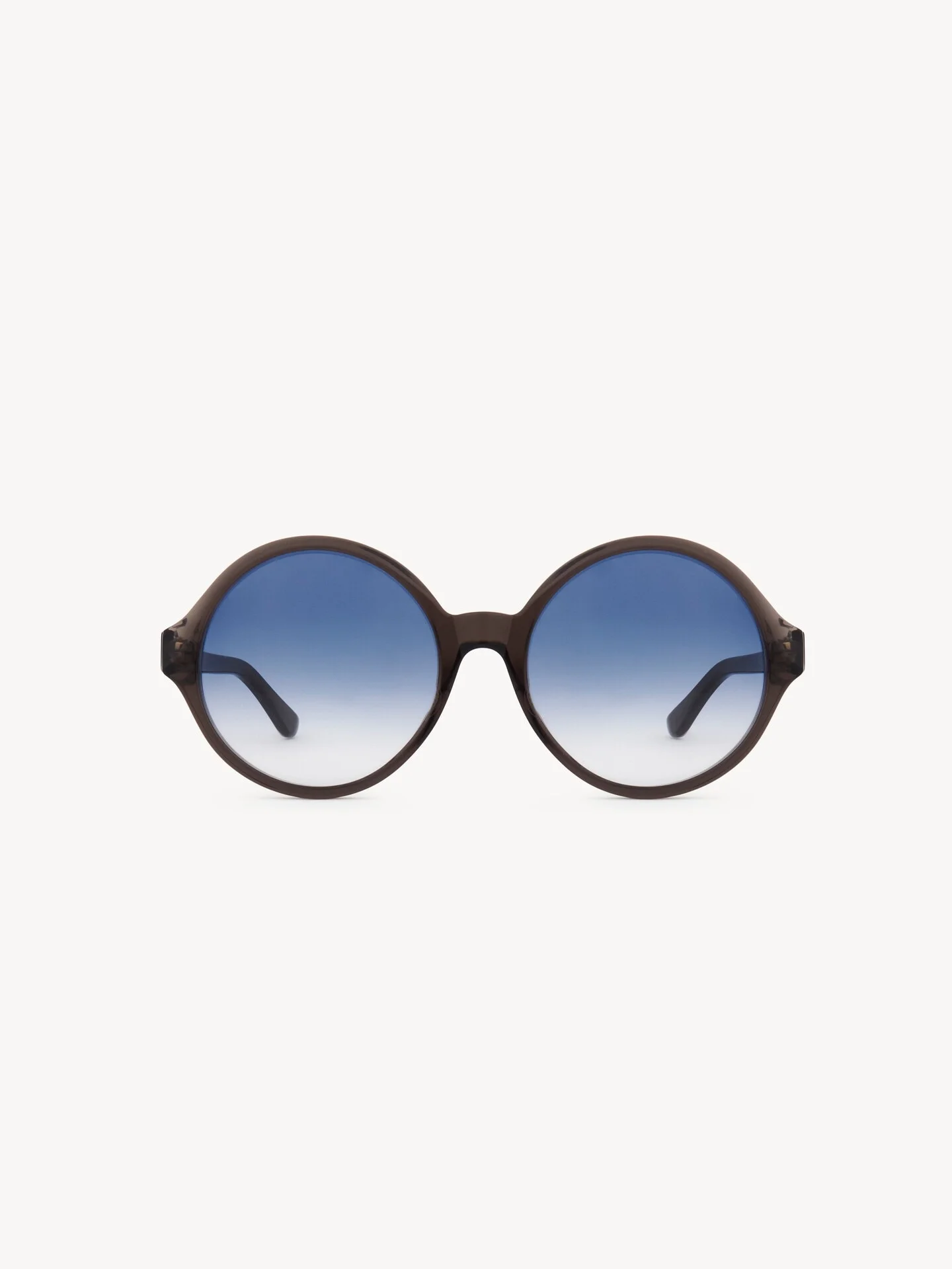 DESCRIPTION These Salome round sunglasses feature a shiny black frame in lower-impact acetate with scalloped detailing and low temples signed with the Chloe logo plate. Gradient blue and crystal lenses finish these 70s-style sunglasses. PRODUCT DETAILS Round sunglasses in lower-impact acetate & bio-based nylon - 100% UVA and UVB protection - Prescription friendly - Chloe logo plate on the temples - Filter category: 2 These sunglasses come with a case and lens cloth - Lens: 2.2" (57 mm) - Bridge: 0.8" (20 mm) - Temple: 5.5" (140 mm) - Black lower-impact acetate frame - Gradient blue & crystal lenses Item code: CHC25SEK0290001 CARE INSTRUCTIONS These sunglasses/eyeglasses are made with carefully selected materials. Please handle with care for a longer product life.- Store in the case provided.- Clean with a soft, dry cloth.- If necessary, use a damp cloth and mild detergent. Do not use solvents or aggressive detergents which may alter the features of the sunglasses/eyewear