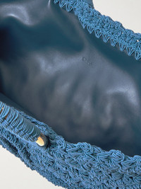 Chloe's innovative tote is as striking in color as it is in texture. Intricately crocheted from azure yarns, it's designed in a slim, scalloped shape and topped with gold-tone handles reminiscent of bangles. You can fit a cardholder, phone and a few makeup essentials inside. Details & Care - Azure crochet - Open top - Top handles - Leather lining
