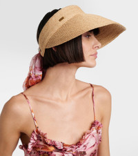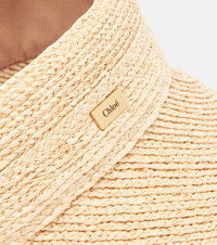 Renowned for its free-spirited aesthetic, Chloe's designs are characterized by romance with a Parisian flair. This visor is woven to a raffia effect and secures at the back with floral-printed silk charmeuse scarf. Product Details - Material: 100% raffia - Care instructions: do not wash - Made in Italy - Designer color name: Antique Pink - Item color: pink - Trim: 100% silk - Details: 50% brass, 50% zamak - Includes: dust bag - Item number: P01039830 Size & Fit - Adjustable size - Circumference 57cm-22.5" - Length of visor 15cm-6"