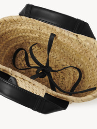 Encapsulating a carefree summer attitude, this Chloé Sense small basket is a compact accessory crafted from handbraided raffia. Smooth calfskin strips and comfortable handles add luxurious contrast, while the Chloé logo embroidery lends a signature finish. A leather link closure secures the open top. All about Chloé Sense… Inspired by the Maison's iconic and instantly recognizable logo, the Chloé Sense line features easy, timeless shapes rooted in the Chloé DNA. Smooth leather is embellished with logo embroidery for textural contrast. PRODUCT DETAILS Small basket in handbraided raffia, smooth calfskin & Chloé logo embroidery Carry: arm & shoulder - Leather link closure - 1 main compartment - Adjustable strap Comes with a dust bag - Width: 11.4” (29 cm) - Height: 6.3” (16 cm) - Depth: 6.3” (16 cm) - Handle drop: 2.8" (7 cm) - Min. strap drop: 19.7" (50 cm) - Max. strap drop: 22.8" (58 cm) This basket bag has been carefully threaded with natural fibers by master artisans. Each piece has been carefully selected for its natural beauty. Any irregularities and color variations are inherent to this kind of natural fiber and a result of artisanal finishing. Protection from direct light, heat and rain is advised. Should the item become wet, dry it immediately with a soft cloth. Due to its slightly abrasive surface, we advise you to avoid contact with delicate materials. Avoid intense rubbing with abrasive materials. Fill the bag with tissue paper to help maintain its shape and store in the provided dust bag. Leather parts can be cleaned using a soft and dry cloth. To make this product, Chloé worked with Leather Working Group (LWG) certified leather manufacturers. LWG certifies tanneries based on their water and energy usage, management of chemicals, solid waste, and wastewater. Color: Black Item code: CHC23SS304J66001