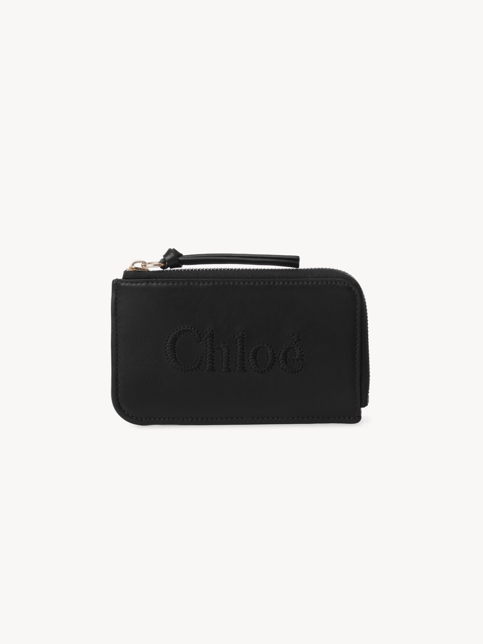 The embroidered Chloé logo takes center stage in this practical small purse crafted from shiny calfskin. At once sophisticated and casual, the purse has clean, minimalist lines and multiple compartments for everyday use. All about Chloé Sense… Inspired by the Maison's iconic and instantly recognizable logo, the Chloé Sense line features easy, timeless shapes rooted in the Chloé DNA. Smooth leather is embellished with logo embroidery for textural contrast. PRODUCT DETAILS Small purse in shiny calfskin - 1 main compartment - 1 flat pocket - 4 card slots Comes with a dust bag - Width: 5.1" (13 cm) - Height: 3” (7.5 cm) This small purse is made from semi-aniline leather. The half-transparent finish imparts a robust nature to the product while preserving its natural character. Respect care instructions on the leaflet. To make this product, Chloé worked with Leather Working Group (LWG) certified leather manufacturers. LWG certifies tanneries based on their water and energy usage, management of chemicals, solid waste, and wastewater. Color: Black Item code: CHC23SP866I10001