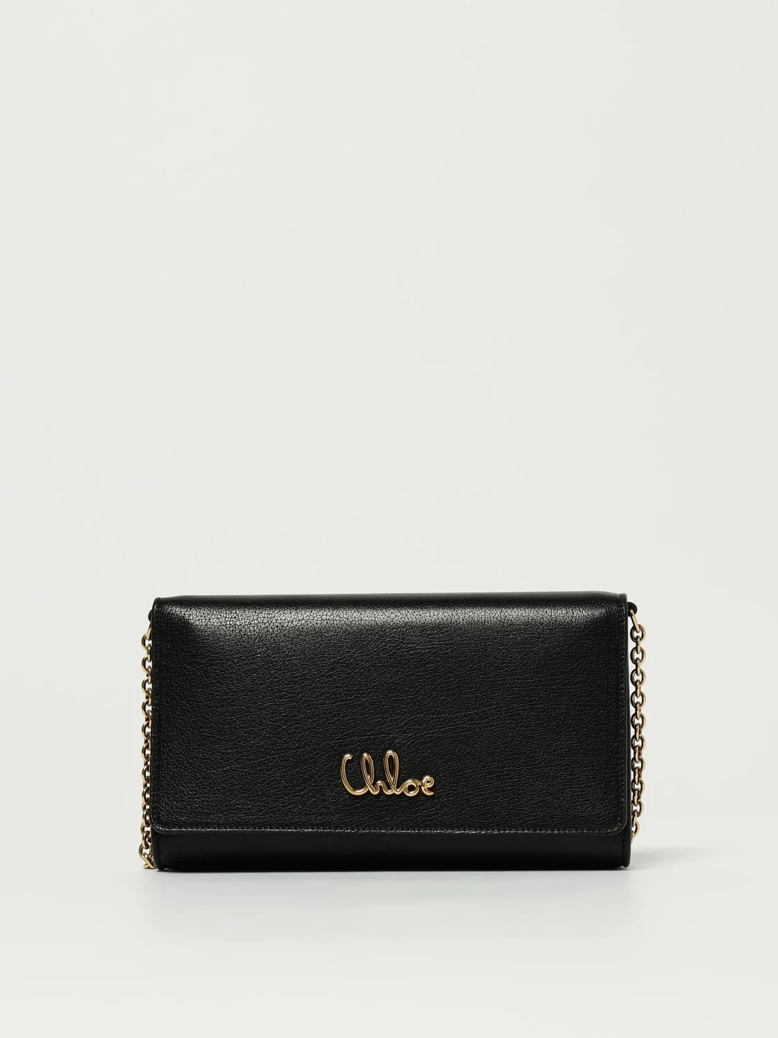 DESCRIPTION - Logo: Metallic - Lining: With logo - Model: Shoulder - Shape: Rectangular - Shoulder strap: Metal mesh - Closure: With flap and magnetic buttons - Materials: Grained calfskin - Pattern: Logo DETAILS AND CARE Composition 100% buffalo leather SIZE AND FIT Sizes Width : 19 cm Height: 11,5 cm Depth: 4 cm Designer code: CH25AP559O37 001 Giglio Code: H20691 Designer: Chloe Collection: Chloe Woman Category: Bags Chloe