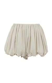 PRODUCT DETAILS - High-waisted, loose draped bloomer design, bubble mini hem - Concealed zip fastening - Unlined - Composition: crinkled silk mix voile - Color: Clear Green - Dry clean only - Spring/Summer '25