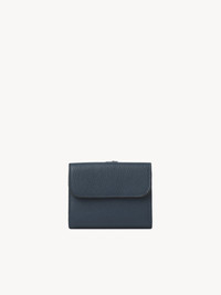 The Maison's iconic Alphabet line includes this tri-fold wallet in grained and shiny calfskin. Designed to hold the essentials, it features multiple card slots and one flat pocket. The front is finished with a knotted link and Chloe-designed golden initial charms. This small wallet will slip easily into your clutch or a small bag. PRODUCT DETAILS Small tri-fold wallet with leather link in grained & shiny calfskin Main lining: Lambskin Flap lining: Calfskin Inside trim: 65% Polyester, 35% Cotton - 1 flat pocket - 6 card slots - 1 bill compartment - Snap fastening Comes with a dust bag - Width: 4.3" (11 cm) - Height: 3.5" (9 cm) - Depth: 1.6" (4 cm) To make this product, Chloe worked with Leather Working Group (LWG) certified leather manufacturers. LWG certifies tanneries based on their water and energy usage, management of chemicals, solid waste, and wastewater. Color: Tapestry Blue Item code: CHC21WP718F5744Q