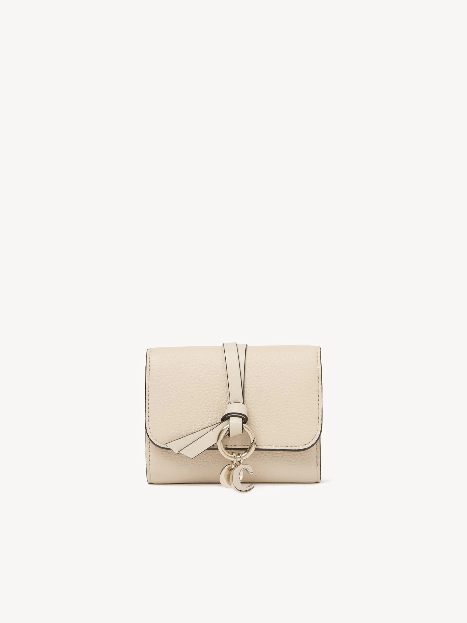 The Maison's iconic Alphabet line includes this trifold wallet in grained and shiny calfskin. Designed to hold the essentials, it features multiple card slots and one flat pocket. The front is finished with a knotted link and Chloé-designed golden initial charms. This small wallet will slip easily into your clutch or a small bag. All about Alphabet... The Alphabet line allows you to personalize your accessory by attaching your initial charm or a secret message to the golden hardware. PRODUCT DETAILS Trifold wallet with leather link in grained & shiny calfskin Main lining: Lambskin - 1 flat pocket - 6 card slots - 1 bill compartment Comes with a dust bag - Width: 4.3" (11 cm) - Height: 3.5" (9 cm) - Depth: 1.6” (4 cm) This small wallet is made from semi-aniline leather. The half-transparent finish imparts a robust nature to the product while preserving its natural character. Respect the care instructions on the leaflet. To make this product, Chloé worked with Leather Working Group (LWG) certified leather manufacturers. LWG certifies tanneries based on their water and energy usage, management of chemicals, solid waste, and wastewater. Color: Sweet Beige Item code: CHC21WP718F5724Q