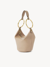 This small Bracelet shoulder bag is crafted from grained buffalo leather. The supple, rounded shape is elevated by oversized bracelet handles secured by the Maison's signature Horse Medal hardware. This Bracelet bag comes with a removable strap for hand, shoulder and wrist carry. PRODUCT DETAILS Small Bracelet handbag in grained buffalo leather Main material: Buffalo leather Main lining: Calfskin Carry: Hand, shoulder & wrist - 1 main compartment - 1 small inside pocket - 1 removable leather handle - Zip closure Comes with a dust bag - Width: 6.7" (17 cm) - Height: 6.3" (16 cm) - Depth: 5.5" (14 cm) - Handle drop: 10.6" (27 cm) - Ring drop: 7.1" (18 cm) This handbag is made from natural leather with a very light finish. Keep away from water (rain). The bag may develop smooth or light halos. If the leather gets wet, dry it with a soft white cotton cloth to absorb water. With use, the leather may become marked. For large and medium size bags, the handle will arrive inside the bag. Do not throw it away. To make this product, Chloe worked with Leather Working Group (LWG) certified leather manufacturers. LWG certifies tanneries based on their water and energy usage, management of chemicals, solid waste, and wastewater. Color: Woodrose Item code: CHC25SS618O37527