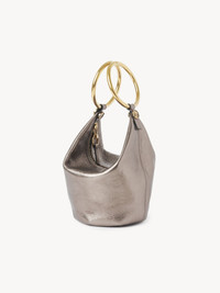This small Bracelet shoulder bag is crafted from metallized leather. The supple, rounded shape is elevated by oversized bracelet handles secured by the Maison's signature Horse Medal hardware. This Bracelet bag comes with a removable strap for hand, shoulder and wrist carry. PRODUCT DETAILS Small Bracelet handbag in metallized calfskin Main material: Calfskin Main lining: Calfskin Carry: Hand, shoulder & wrist - 1 main compartment - 1 small inside pocket - 1 removable leather handle - Zip closure Comes with a dust bag - Width: 6.7" (17 cm) - Height: 6.3" (16 cm) - Depth: 5.5" (14 cm) - Handle drop: 10.6" (27 cm) - Ring drop: 7.1" (18 cm) This handbag is made from soft metallic leather which may develop smooth or light halos. If the leather gets wet, dry it with a soft white cotton cloth to absorb water. With use, the leather may become marked or shiny. To make this product, Chloe worked with Leather Working Group (LWG) certified leather manufacturers. LWG certifies tanneries based on their water and energy usage, management of chemicals, solid waste, and wastewater. Color: Shiny Gray Item code: CHC25SS618O54074