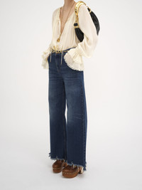 This small Bracelet hobo bag is crafted from shiny grained buffalo leather. The supple, rounded shape is elevated by a playful banana handle inspired by the Maison's Spring 2001 collection. Stacked bi-color rings finish the ends. Carry this small wristlet bag on the shoulder. Wear with matching pieces from the jewelry and accessories collections. PRODUCT DETAILS Small Bracelet hobo bag in grained buffalo leather Main material: Asian Water Buffalo Leather Main lining: Split Calfskin Carry: Shoulder - 1 main compartment - 1 inside flat pocket - Banana-shaped metal handle - Zipper closure Comes with a dust bag - Width: 12.6" (32 cm) - Height: 5.5" (14 cm) - Depth: 3.9" (10 cm) - Handle drop: 9.4" (24 cm) This hobo bag is made from semi-aniline leather. The half-transparent finish imparts a robust nature to the product while preserving its natural character. Respect the care instructions on the leaflet. To make this product, Chloe worked with Leather Working Group (LWG) certified leather manufacturers. LWG certifies tanneries based on their water and energy usage, management of chemicals, solid waste, and wastewater. Color: Black Item code: CHC24WS614O37001