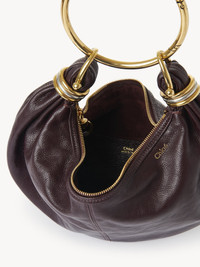 Inspired by the Maison's Archives, this small Bracelet hobo bag is crafted from shiny grained calfskin. The supple, rounded shape is elevated by a bracelet handle and stacked two-toned rings at the ends. Carry the small wristlet bag in the hand or on the shoulder. PRODUCT DETAILS Small Bracelet hobo bag in shiny grained calfskin Main material: Calfskin Main lining: Split calfskin Carry: Hand, shoulder & cross-body - 1 main compartment - 1 inside flat pocket - Zipper closure - 1 removable ring handle - 1 adjustable & removable strap Comes with a dust bag - Width: 12.6" (32 cm) - Height: 5.5" (14 cm) - Depth: 3.9" (10 cm) - Handle drop: 7.9" (20 cm) - Min. strap drop: 19.7" (50 cm) - Max. strap drop: 23.6" (60 cm) This purse is made from pure aniline leather. Tanning imparts a specific character to the skin, such as hues and wrinkles, combined with a light and transparent aniline finish. Respect the care instructions on the leaflet. To make this product, Chloe worked with Leather Working Group (LWG) certified leather manufacturers. LWG certifies tanneries based on their water and energy usage, management of chemicals, solid waste, and wastewater. Color: Deep Violine Item code: CHC24AS611N7255P
