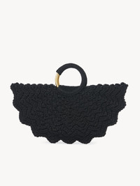 The small Bracelet Paravent crochet tote bag pairs a scalloped silhouette with the line's semi-covered golden bracelet handle. The front features a handwritten Chloe signature inspired by the Maison's heritage. PRODUCT DETAILS Small Bracelet Paravent tote bag in crochet Main material: Acrylic Main lining: Lambskin Carry: Hand - 1 main compartment - Magnet closure Comes with a dust bag - Width: 16.5" (42 cm) - Height: 8.3" (21 cm) - Depth: 0.8" (2 cm) - Handle drop: 2.2" (5.5 cm) This tote bag is made from a woven fabrication adapted to leather goods requirements. A water-repellent treatment was applied to the fabric, but rain exposure should be avoided. Avoid rubbing this material against color-contrasting materials and shield it from humidity, light, heat, liquids and greasy substances. Follow all care instructions on the insert. Color: Black Item code: CH25US622P23001