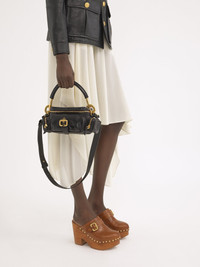 This small Camera bag is crafted from natural shiny buffalo leather. Its multiple pockets are embellished with revamped zippers and buckles from the iconic Paddington bag. Carry the small Camera bag on the shoulder or cross-body with the handles or strap. PRODUCT DETAILS Small double carry purse in natural shiny leather Main material: Buffalo leather Flap lining: Buffalo leather Main lining: 54% cotton, 46% linen Carry: Shoulder & cross-body - 1 main compartment - 1 inside flap pocket - 2 side pockets with zip closures - 1 front pocket with magnetic flap closure - 1 removable handle - 1 adjustable & removable strap - Zip closure Comes with a dust bag - Width: 9.8" (25 cm) - Height: 4.7" (12 cm) - Depth: 4.7" (12 cm) - Handle drop: 5.1" (13 cm) - Min. strap drop: 17.7" (45 cm) - Max. strap drop: 21.7" (55 cm) This shoulder bag is made from pure aniline leather. Tanning imparts a specific character to the skin, such as hues and wrinkles, combined with a light and transparent aniline finish. Respect the care instructions on the leaflet. To make this product, Chloé worked with Leather Working Group (LWG) certified leather manufacturers. LWG certifies tanneries based on their water and energy usage, management of chemicals, solid waste, and wastewater. Color: Black Item code: CHC24AS534N83001