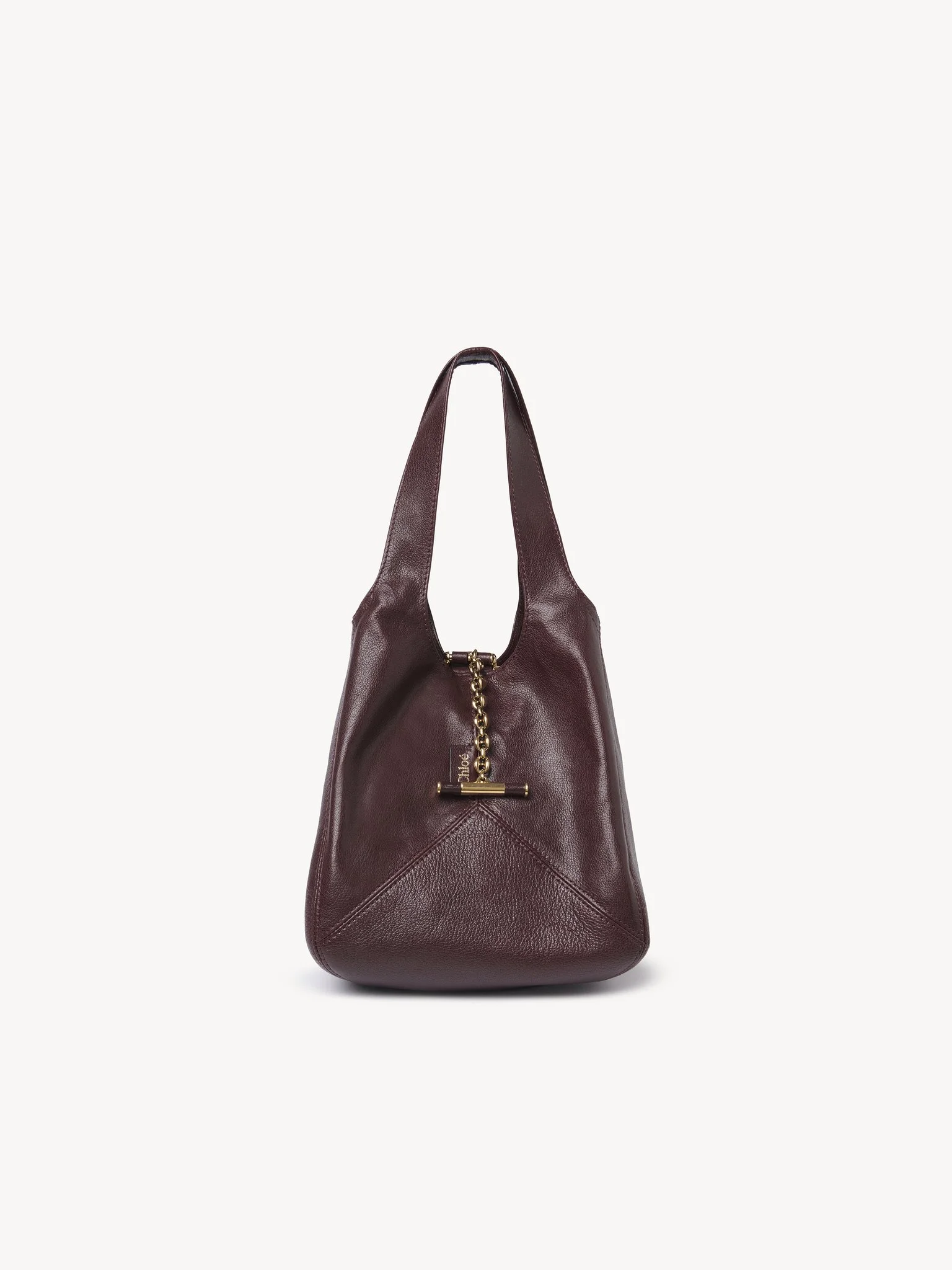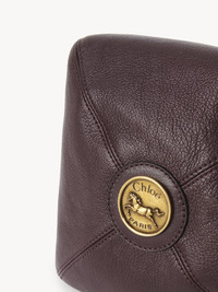This small Chloe Balloon bag is crafted from a patchwork of grained buffalo leather and shiny grained cowhide. The rounded, unstructured silhouette is finished with an equestrian-inspired gold-tone toggle clasp and chain, while the Maison's signature Horse Medal signs the base of the bag. PRODUCT DETAILS Small Chloe Balloon bag in a grained buffalo leather & shiny grained cowhide patchwork Main material: Buffalo leather Secondary material: Cowhide Carry: Hand & shoulder - 1 main compartment - Toggle closure Comes with a dust bag - Width: 8.3" (21 cm) - Height: 8.3" (21 cm) - Depth: 7.1" (18 cm) - Handle drop: 7.1" (18 cm) To make this product, Chloe worked with Leather Working Group (LWG) certified leather manufacturers. LWG certifies tanneries based on their water and energy usage, management of chemicals, solid waste, and wastewater. Color: Grenat Item code: CH25WS644Q15602
