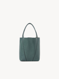 Crafted from shiny grained cowhide, the small Chloe Spin tote bag has a minimalist silhouette elevated with graphic lines. A dangling chain features the Maison's signature Chloe and Horse Medals. The compact interior combines with double handles and a removable strap. Wear on the shoulder, crossbody, or slide the handles through the ring for hand or wrist carry. PRODUCT DETAILS Small Chloe Spin tote bag in shiny grained cowhide Main material: Cowhide Main lining: Cowhide Carry: Shoulder, crossbody, hand & wrist - 1 main compartment - Removable and adjustable strap - Magnetic closure Comes with a dust bag - Width: 7.1" (18 cm) - Height: 7.5" (19 cm) - Depth: 3.1" (8 cm) - Handle drop: 5.1" (13 cm) - Min. strap drop: 23.6" (60 cm) - Max. strap drop: 25.6" (65 cm) To make this product, Chloe worked with Leather Working Group (LWG) certified leather manufacturers. LWG certifies tanneries based on their water and energy usage, management of chemicals, solid waste, and wastewater. This Chloe Spin bag is made with unlined leather, so there may be slight marks inside the bag, such as veins or scratches. Color: Tornado Blue Item code: CH25SS812N8441G