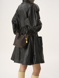 Crafted from shiny grained cowhide, the small Chloe Spin tote bag has a minimalist silhouette elevated with graphic lines. A dangling chain features the Maison's signature Chloe and Horse Medals. The compact interior combines with double handles and a removable strap. Wear on the shoulder, crossbody, or slide the handles through the ring for hand or wrist carry. PRODUCT DETAILS Small Chloe Spin tote bag in shiny grained cowhide Main material: Cowhide Main lining: Cowhide Carry: Shoulder, crossbody, hand & wrist - 1 main compartment - Removable and adjustable strap - Magnetic closure Comes with a dust bag - Width: 7.1" (18 cm) - Height: 7.5" (19 cm) - Depth: 3.1" (8 cm) - Handle drop: 5.1" (13 cm) - Min. strap drop: 23.6" (60 cm) - Max. strap drop: 25.6" (65 cm) To make this product, Chloe worked with Leather Working Group (LWG) certified leather manufacturers. LWG certifies tanneries based on their water and energy usage, management of chemicals, solid waste, and wastewater. This Chloe Spin bag is made with unlined leather, so there may be slight marks inside the bag, such as veins or scratches. Color: Kohl Brown Item code: CH25SS812N8424X