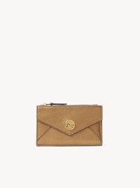 DESCRIPTION Crafted from metallized buffalo leather, this Envelope small purse combines a zipped main compartment and coin pocket with four card slots. The elongated design is finished with the Maison's golden Horse Medal in a nod to the equestrian world. PRODUCT DETAILS Envelope small purse with card slots in metallized buffalo leather Main lining: Calfskin Inner lining: 65% Polyester, 35% Cotton - 1 coin pocket - 1 main compartment - 4 card slots - 1 flat pocket - Zip & snap button closure Comes with a dust bag - Width: 5.1" (13 cm) - Height: 3.1" (8 cm) To make this product, Chloe worked with Leather Working Group (LWG) certified leather manufacturers. LWG certifies tanneries based on their water and energy usage, management of chemicals, solid waste, and wastewater. Color: Golden Brown Item code: CH26SP538R1820Y CARE INSTRUCTIONS In order to protect this article, we recommend that you: avoid rubbing against abrasive materials shield it from humidity, light and heat avoid contact with liquids and greasy substances (makeup, cream) store your product carefully in its dustcover when not in use avoid rubbing against color-contrasting clothes or materials. To remove a water stain, gently soak up liquid by dabbing it with a white cloth should a scratch occur on the leather, you can gently massage it with the same type of cloth for all other issues, please contact the Chloe after-sales service or a specialist.