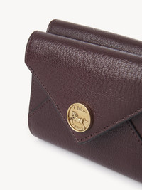 Crafted from grained goatskin, this small Envelope tri-fold wallet features a note/bill compartment, a coin pocket and six card slots. The small wallet is finished with the Maison's golden Horse Medal in a nod to the equestrian world. PRODUCT DETAILS Small Envelope tri-fold wallet in grained goatskin Main lining: Calfskin Inner lining: 65% Polyester, 35% Cotton Flap lining: Goatskin - 6 card slots - 1 note/bill compartment - 1 coin pocket - Snap button closure Comes with a dust bag - Width: 4.3" (11 cm) - Height: 3.9" (10 cm) To make this product, Chloe worked with Leather Working Group (LWG) certified leather manufacturers. LWG certifies tanneries based on their water and energy usage, management of chemicals, solid waste, and wastewater. Color: Grenat Item code: CH25SP543O93602