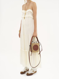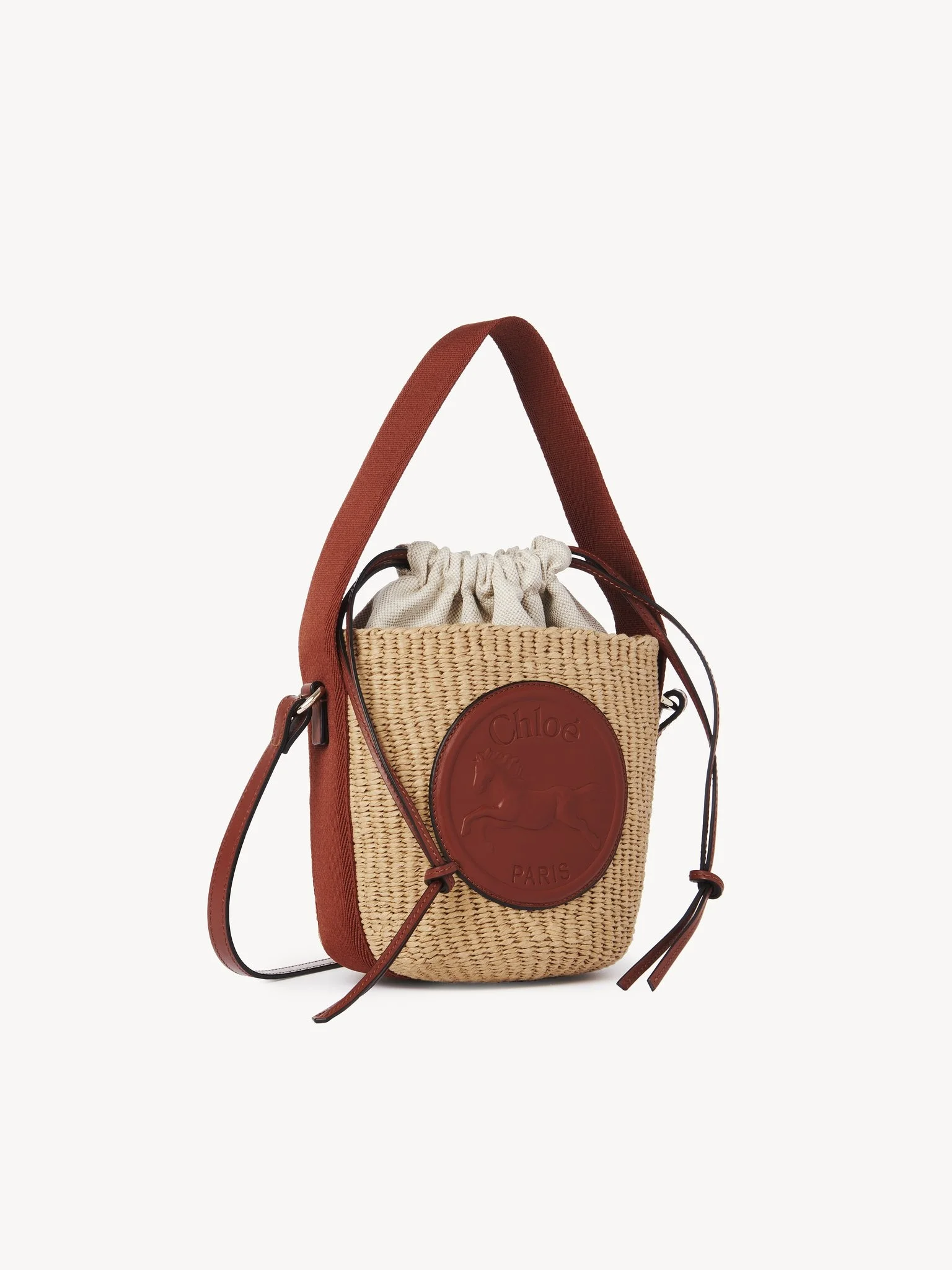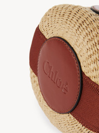 This small Horse Medal basket bag is handwoven from fair-trade paper by independent craftswomen in Kenya. The spacious, rounded compartment is finished with a signature calfskin medal, featuring the Chloe logo and an embossed image of a galloping horse. A cotton pouch with a leather drawstring keeps items secure. Carry your basket by the handle or on the shoulder with the leather strap. PRODUCT DETAILS Small Horse Medal basket bag in fair-trade paper & calfskin Main material: Paper Secondary material: Calfskin Main lining: 55% Cotton, 45% Linen Trimming: Polyester Carry: Hand & crossbody - 1 main compartment - 1 inside pouch Comes with a dust bag - Width: 6.7" (17 cm) - Height: 6.3" (16 cm) - Depth: 6.3" (16 cm) This model has been handwoven with natural fibers, so the dimensions may slightly vary from one basket to another. - Handle drop: 6.3" (16 cm) - Strap drop: 17.9" (45.5 cm) This basket bag is made from paper raffia. Keep away from water (rain). If the leather gets wet, dry with a soft white cotton cloth to absorb water. Color: Sepia Brown Item code: CHC25SS592O8227S