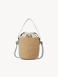 This small Horse Medal basket bag is handwoven from fair-trade paper by independent craftswomen in Kenya. The spacious, rounded compartment is finished with a signature calfskin medal, featuring the Chloe logo and an embossed image of a galloping horse. A cotton pouch with a leather drawstring keeps items secure. Carry your basket by the handle or on the shoulder with the leather strap. Each basket comes with a leather label signed by the craftsman who made it. PRODUCT DETAILS Small Horse Medal basket bag in fair-trade paper & calfskin Main material: Paper Secondary material: Calfskin Main lining: 55% Cotton, 45% Linen Trimming: Polyester Carry: Hand & crossbody - 1 main compartment - 1 inside pouch Comes with a dust bag - Width: 6.7" (17 cm) - Height: 6.3" (16 cm) - Depth: 6.3" (16 cm) This model has been handwoven with natural fibers, so the dimensions may slightly vary from one basket to another. - Handle drop: 6.3" (16 cm) - Strap drop: 17.9" (45.5 cm) Color: Bluish Green Item code: CHC25SS592O8238T