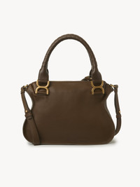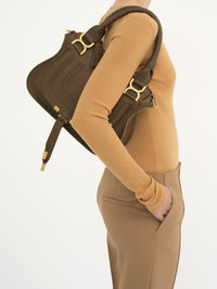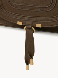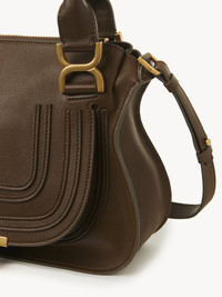 Crafted from grained calfskin, this small Marcie purse has a slouchy silhouette with feminine lines. It is finished with saddle stitching, iconic gold-tone buckles and hand-wrapped double handles. The line's dangling leather tassels secure the flap. Carry this leather bag in the hand, on the shoulder or cross-body with the handles or strap. PRODUCT DETAILS Small shoulder bag in grained calfskin Main material: Calfskin Main lining: 68% Linen, 32% Cotton Flap lining: Calfskin Carry: Hand, shoulder & cross-body - Roomy compartment - Zippered closure - Front slip pocket hidden by the flap - 1 internal zippered pocket - Removable leather strap attached with hooks Comes with a dust bag - Width: 11.8" (30 cm) - Height: 9.1" (23 cm) - Depth: 3.5" (9 cm) - Strap drop: 20.1" (51 cm) This handbag is made from semi-aniline leather. The half-transparent finish imparts a robust nature to the product while preserving its natural character. Follow all care instructions on the insert. To make this product, Chloé worked with Leather Working Group (LWG) certified leather manufacturers. LWG certifies tanneries based on their water and energy usage, management of chemicals, solid waste, and wastewater. Color: Dark Khaki Item code: CHC22AS628I3120V