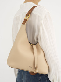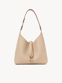This small Marcie hobo bag has a slouchy, minimalist silhouette. Crafted from grained calfskin, it features a contrasting studded handle embellished with the line's iconic gold-tone metallic piece. Signature leather tassels secure its suede calfskin interior. Wear this leather bag on the shoulder. PRODUCT DETAILS Small hobo bag in grained calfskin Main material: Calfskin Main lining: Split calfskin Handle: Calfskin Carry: Shoulder - Tassel closure - 1 main compartment - 1 inside zippered pocket Comes with a dust bag - Width: 11.4" (29 cm) - Height: 8.5" (21.5 cm) - Depth: 3.7" (9.5 cm) - Handle drop: 10.2" (26 cm) This handbag is made from semi-aniline leather. The half-transparent finish imparts a robust nature to the product while preserving its natural character. Follow all care instructions on the insert. To make this product, Chloé worked with Leather Working Group (LWG) certified leather manufacturers. LWG certifies tanneries based on their water and energy usage, management of chemicals, solid waste, and wastewater. Color: Cement Pink Item code: CHC24AS629I316J5