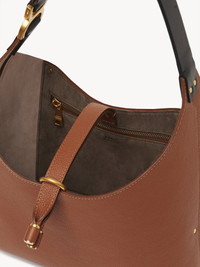 From the Maison's iconic Marcie line, this hobo bag is crafted from grained calfskin with a slouchy silhouette and the line's signature metallic piece on the leather handle. Gold-toned studs and dangling tassels finish this leather bag which has a spacious interior for all your daily essentials. Wear casually on the shoulder. All about Marcie... The iconic Marcie line combines soft silhouettes with equestrian codes and signature hardware. PRODUCT DETAILS Shoulder bag in grained calfskin Main material: Calfskin Main lining: Split calfskin Handle: Calfskin Carry: Shoulder - Tassel closure - 1 main compartment - 1 inside zipped pocket Comes with a dust bag - Width: 11.4" (29 cm) - Height: 8.5" (21.5 cm) - Depth: 3.7" (9.5 cm) - Handle drop: 10.2" (26 cm) This handbag is made from semi-aniline leather. The half-transparent finish imparts a robust nature to the product while preserving its natural character. Follow all care instructions on the insert. To make this product, Chloé worked with Leather Working Group (LWG) certified leather manufacturers. LWG certifies tanneries based on their water and energy usage, management of chemicals, solid waste, and wastewater. Color: Tan Item code: CHC24AS629I3125M