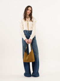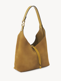 This small Marcie hobo bag has a slouchy, minimalist silhouette. Crafted from suede calfskin, it features a tone-on-tone studded handle embellished with the line's iconic gold-tone metallic piece. Signature leather tassels secure its calfskin interior. Wear this leather bag on the shoulder. PRODUCT DETAILS Small Marcie hobo bag in suede calfskin Main material: Calfskin Secondary material: Calfskin Main lining: Calfskin Handle: Calfskin Carry: Shoulder - 1 main compartment - 1 inside zippered pocket - Tassel closure Comes with a dust bag - Width: 11.4" (29 cm) - Height: 8.5" (21.5 cm) - Depth: 3.7" (9.5 cm) - Handle drop: 10.2" (26 cm) To make this product, Chloe worked with Leather Working Group (LWG) certified leather manufacturers. LWG certifies tanneries based on their water and energy usage, management of chemicals, solid waste, and wastewater. Color: Gold Khaki Item code: CH25AS629Q0721B