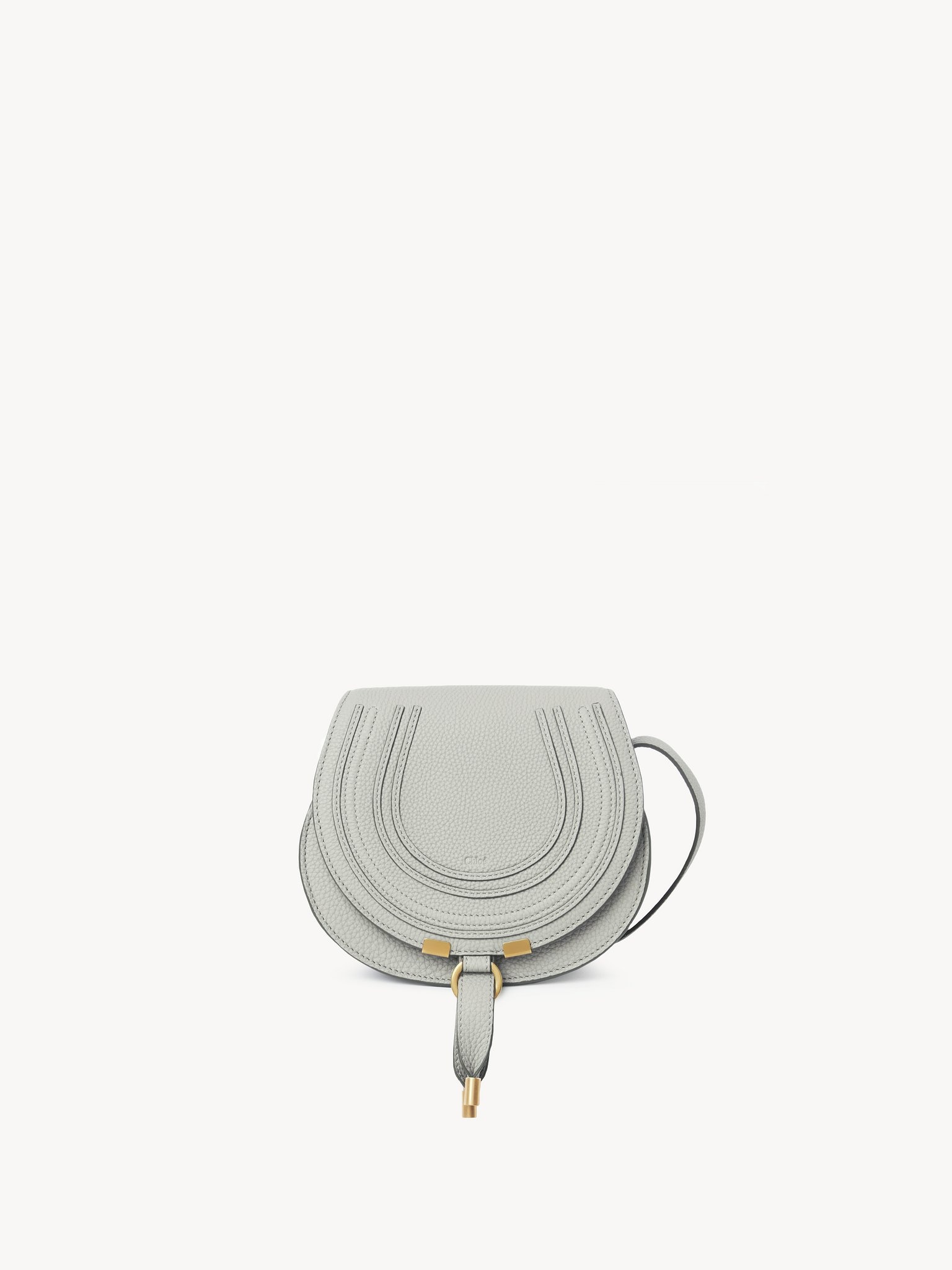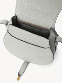 This small Marcie saddle bag is crafted from grained calfskin with a rounded silhouette and a clean top line. The flap features the line's iconic saddle stitching, secured with signature dangling leather tassels. This leather bag comes with a strap for shoulder or cross-body carry. PRODUCT DETAILS Small saddle bag in grained calfskin Main material: Calfskin Main lining: 68% Linen, 32% Cotton Flap lining: Calfskin Carry: Shoulder & cross-body - Tassel closure - 1 roomy compartment - 1 front slip pocket - Internal flat card pocket - Adjustable leather strap Comes with a dust bag - Width: 7.5" (19 cm) - Height: 6.7" (17 cm) - Depth: 3.9" (10 cm) - Min. strap drop: 20.5" (52 cm) - Max. strap drop: 24.4" (62 cm) This day bag is made from semi-aniline leather. Tanning imparts a specific character to the skin, such as hues and wrinkles, combined with a light and transparent aniline finish. Respect the care instructions on the leaflet. To make this product, Chloe worked with Leather Working Group (LWG) certified leather manufacturers. LWG certifies tanneries based on their water and energy usage, management of chemicals, solid waste, and wastewater. Color: Blue Mist Item code: CHC22AS680I3140W