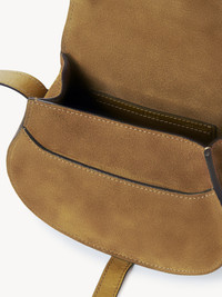 This small Marcie saddle bag is crafted from suede calfskin with a rounded silhouette and a clean top line. The flap features the line's iconic saddle stitching and is secured with signature dangling leather tassels. This leather bag comes with a strap for shoulder or crossbody carry. PRODUCT DETAILS Small Marcie saddle bag in suede calfskin Main material: Calfskin Secondary material: Calfskin Flap lining: Calfskin Carry: Shoulder & crossbody - 1 roomy compartment - 1 front slip pocket - 1 inside flat card pocket - 1 adjustable leather strap - Tassel closure Comes with a dust bag - Width: 7.5" (19 cm) - Height: 6.7" (17 cm) - Depth: 3.9" (10 cm) - Min. strap drop: 20.5" (52 cm) - Max. strap drop: 24.4" (62 cm) To make this product, Chloe worked with Leather Working Group (LWG) certified leather manufacturers. LWG certifies tanneries based on their water and energy usage, management of chemicals, solid waste, and wastewater. Color: Gold Khaki Item code: CH25AS680Q0721B