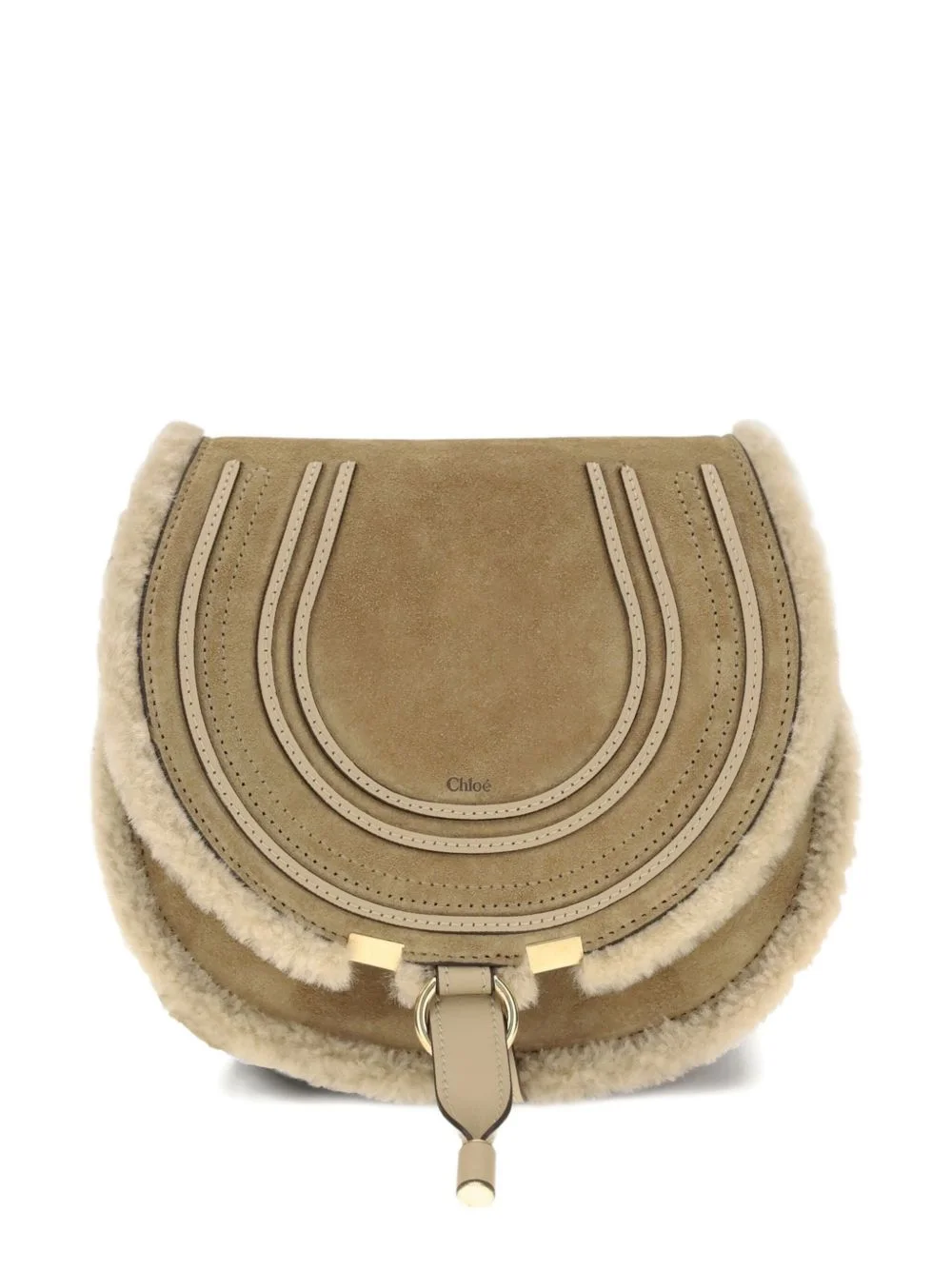 small Marcie saddle cross body bag Highlights - Light brown - Shearling trim - Gold-tone hardware - Suede panel Made in Italy Composition Outer: Calf Leather 100%, Sheep Skin/Shearling 100% Lining: Calf Leather 100% SIZE & FIT Measurement DEPTH 3.93 in(10 cm) HEIGHT 6.69 in(17 cm) WIDTH 7.48 in(19 cm)