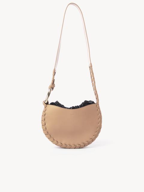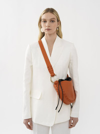 Crafted from smooth calfskin, the small Mate hobo handbag has a rounded silhouette highlighted by soft leather laces woven all along the edges and detailing the top handle. A striking signature C in pale gold metal adorns the handle, lending a feminine touch to the bold design. A contrasting drawstring pouch in soft nappa lambskin sits inside the outer casing, bringing a relaxed mood to the sophisticated aesthetic. This compact shoulder bag can be worn on the shoulder or cross-body. All about Mate... An extension of the Wooden C line, Mate revisits the Maison's "C" signature in metal for a jewelry allure. Soft leather laces contour the sides for a modern yet crafty attitude. PRODUCT DETAILS Hobo handbag in smooth calfskin & nappa lambskin Carry: long shoulder & cross-body - 1 main compartment - Internal drawstring bag - Long strap Comes with a dust bag - Width: 10.2" (26 cm) - Height: 6.7" (17 cm) - Depth: 2" (5 cm) - Strap drop: 19.7" (50 cm) This hobo handbag is made from semi-aniline leather. The half-transparent finish imparts a robust nature to the product while preserving its natural character. Respect care instructions on the leaflet. Color: Henna Orange Item code: CHC22AS571H95884